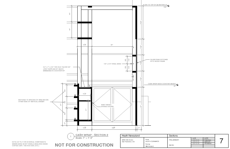 The Newsstand project was my second freelance project with Heath Ceramics, a company that continues to be one of my favorite to work with and follow. As part of their continuing efforts to engage the community they were developing a section of their San Francisco facility into a newsstand. My key role was to help them develop the documents translating the design to the fabricator.